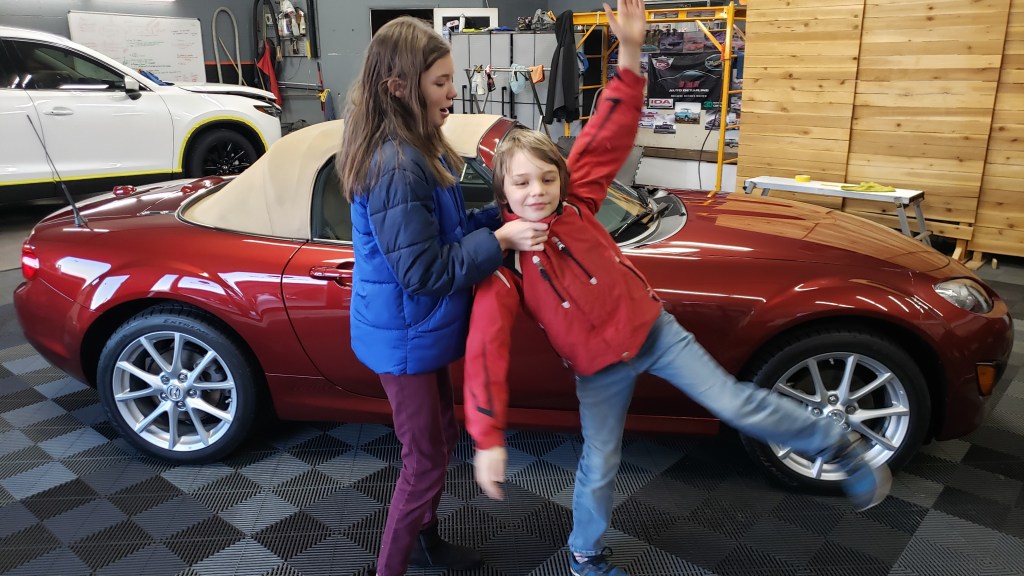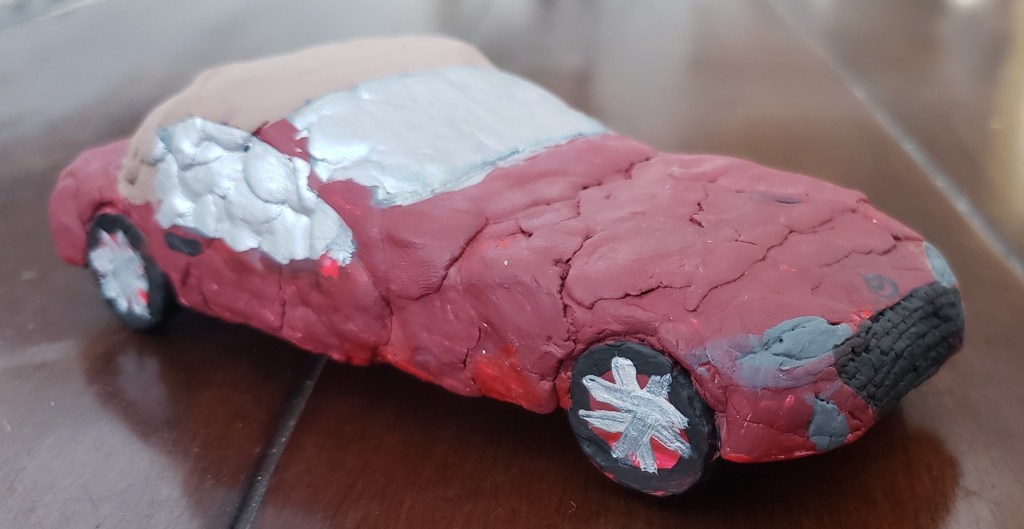 For my Christmas present this year, my nine-year-old son, Elijah, made a clay model of my 2011 GT for me. Do you see the Mazda logo in the front view photo? Ha! He and his older sister are standing in front of the car in one of these pics, when I picked it up from my auto detailer last week.