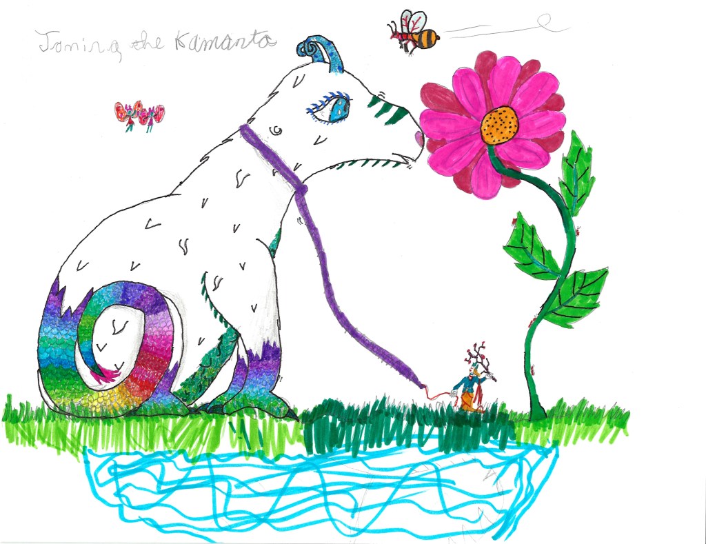 Fiona recently drew and colored this for a new friend. The color gradient in the tail is impressive. Also impressive is the time that Fiona took making something for someone she just met.